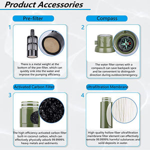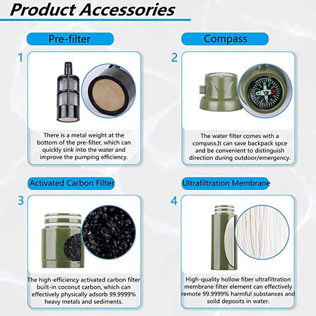 ✅ Système de filtration en 3 étapes -Préfiltre pour éliminer la saleté, la boue, etc., fibre de charbon actif de haute qualité, membrane d’ultrafiltration en fibres creuses de qualité médicale qui élimine 99,99% des substances nocives et sédiments.