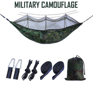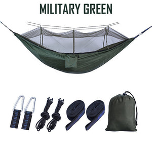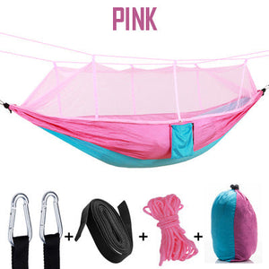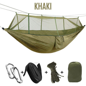 | Inclus | 1x Hamac, 1x Moustiquaire, 2x Mousquetons, 2x Sangles, 2x Cordes de fixation, 1x Sac |